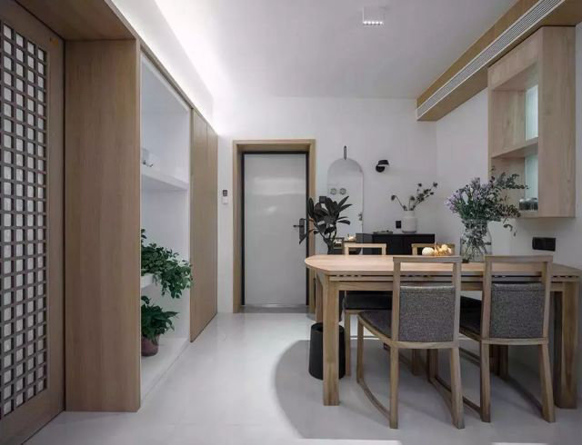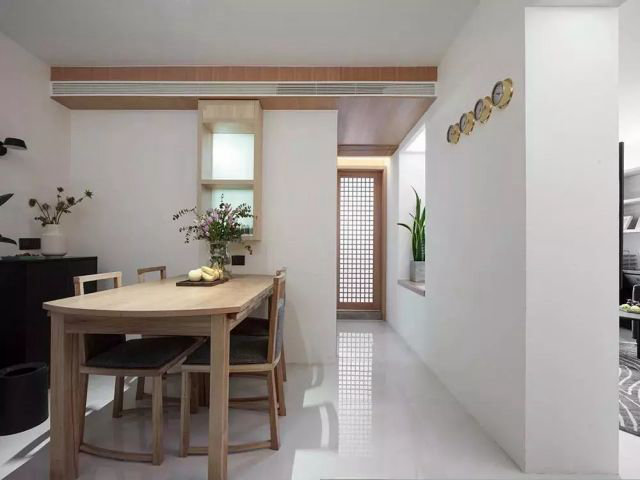 原狀次臥改成客廳,采用蘇州園林隔與透的設(shè)計(jì),客廳與餐廳形成一個(gè)視覺上的大空間。