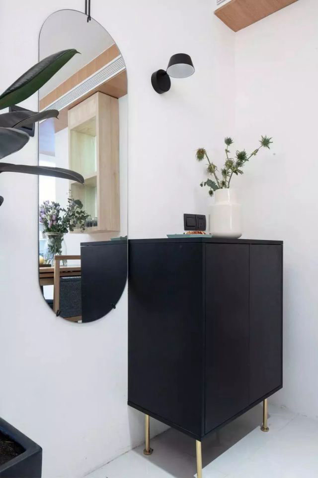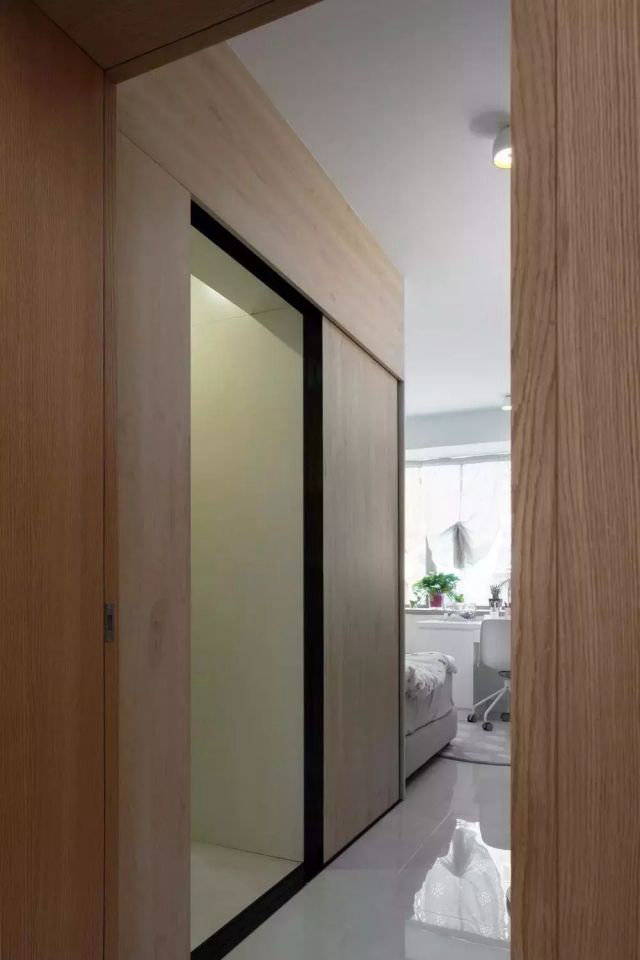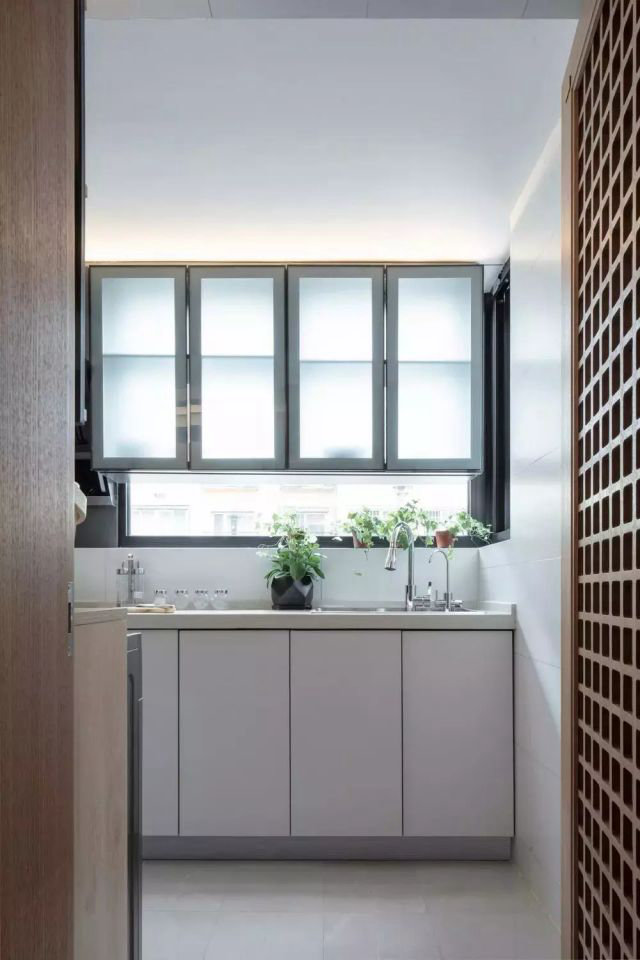 利用原狀的窗洞、門洞的空間做了柜子,充分利用每一寸空間。透光的櫥柜不但節(jié)省空間,也能有效利用自然光,兩全其美。