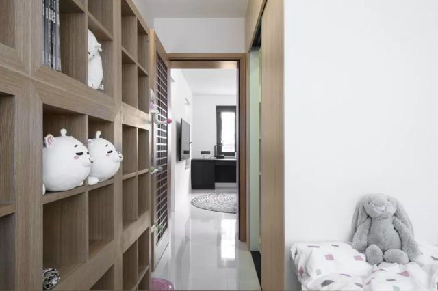 此外,還在女兒房做了一個(gè)大的儲(chǔ)藏、衣帽間,主臥做通體衣柜,滿足了大部分的儲(chǔ)物功能。