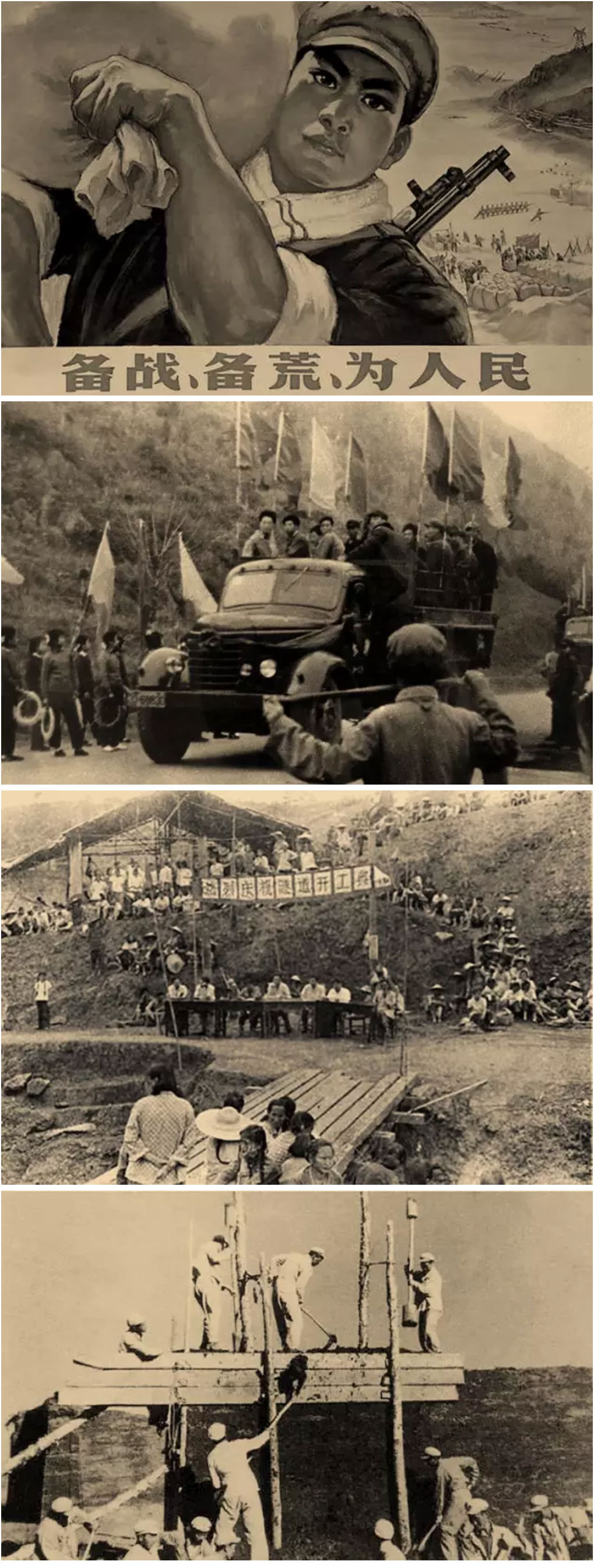 “備戰備荒為人民!”、“好人好馬上三線!”,上世紀60年代,中國十余個省、自治區進行了一場以戰備為指導思想,大規模的國防、科技、工業、交通等基本設施建設—“三線建設”。400萬工人、干部、知識分子、軍人,在時代號召下,打起背包,跋山涉水,來到深山峽谷、大漠荒野,風餐露宿、肩扛人挑,用艱辛、血汗,在中國大地上陸續建起了1100多個大中型工礦企業、科研單位和大專院校。