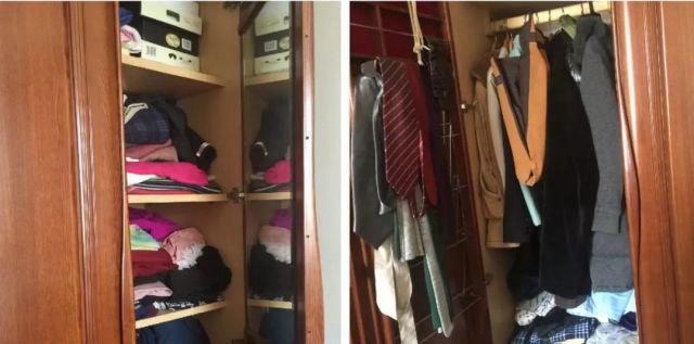 主臥為徐立平夫婦居住。保留了原有有著歷史記憶的實木衣柜,并增設了衣帽間。女主人和男主人不常穿衣物收納到衣帽柜,被子沙發墊子收納入床箱,其他物品收納入衣帽間內小柜子。季節性衣服男主人和女主人分開放入老衣柜。