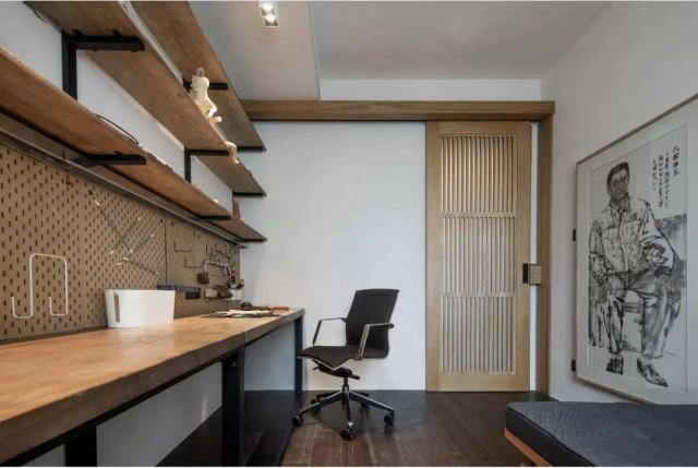 三米多長的超大工作臺,厚度足夠,滿足徐師傅的技術研究與手工習慣。增設的沙發床,親友來訪又可成為客房。