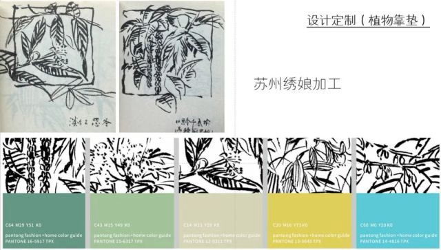 植物靠墊設計手稿與配色