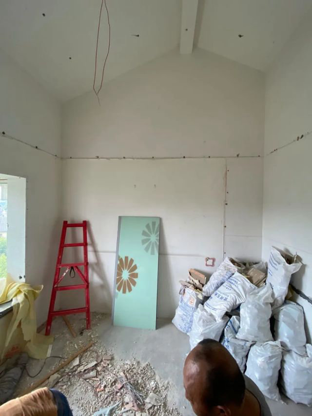 針對房屋內部潮濕的問題,將門窗全部換為鋁合金斷橋鋁中空玻璃,形成一個室內封閉性空間,同時增加新風口,確保新鮮空氣的輸入。充分利用坡屋頂上的空間,除客廳外,小孩房、夫妻房、老人房、廚房吊頂均做了局部上升,使空間更具變化和活躍。