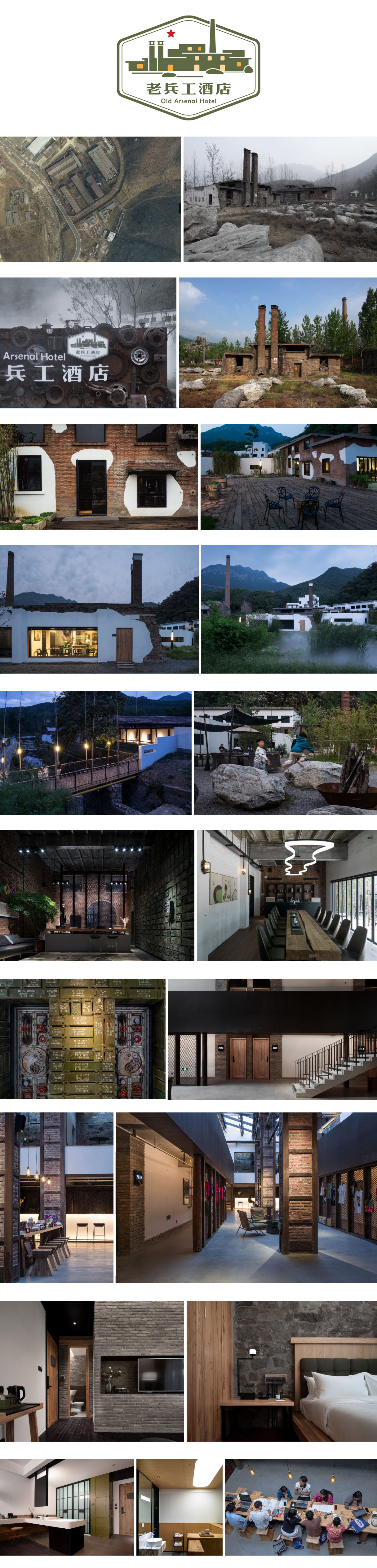 河南濟(jì)源市,愚公移山的故里,太行山腹地,有一個始建于1970年,代號531,生產(chǎn)火炮的軍工廠。時光荏苒,因位處偏僻山區(qū),曾匯聚著全國精英的531今天已成歷史。留下了空蕩的廠房、禮堂、住宅樓、澡堂、食堂、郵局、冰糕廠、門市部……,和一代人滿滿的回憶。歷史等待著新生。受濟(jì)源文旅集團(tuán)委托,啟動了位于思禮鎮(zhèn)九里溝的老兵工廠的規(guī)劃設(shè)計(jì),老兵工酒店便是其中“大規(guī)劃,小切入”的第一個建設(shè)項(xiàng)目。老廠房是一個時代的印記,是社會發(fā)展的歷史“證據(jù)”,一磚一瓦都能講出故事。如何保留歷史記憶,并改造滿足新的功能需求,獲得度假市場親睞,是此項(xiàng)目的課題。